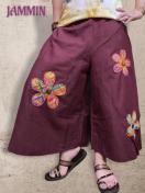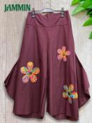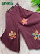 お花型のアジアン柄生地付きワイドパンツです。