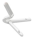下部の支えは2段階に調整可能です。狭く開けばスマホ用として、広く開けばタブレット用としてお使いいただけます。折れ曲がる各部位は、カチッと固定される使用かんで、数段階に調整可能です。
