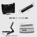 7〜11インチiPadやタブレットPC、スマートフォンなどに対応する折り畳み式スタンドです。重さ約77g、折り畳むことで18cm x 2.6cmx 3.2cmと非常にコンパクトに収納できます。