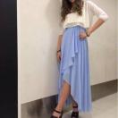 セシルマクビー ロングワンピース ドレス ロング丈 マキシ丈 キャミソール プリーツ シフォン 白 ホワイト 水色 ブルー バイカラー
