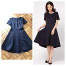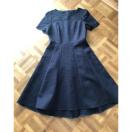 幾何柄のジャーガード素材とコードレースの使い合わせのワンピースです。クルーネックで、胸元と袖にコードレースを使用し、ウエストを切り替え、SK部分は8枚剥ぎにしてフレアを出しました。女性らしいフィット&フレアシルエットです。締切日時