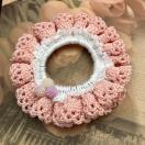 レース糸で編んだフリフリのダブルフリルシュシュです。