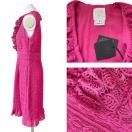 コットン製で高級感のあるレース素材が贅沢なアナスイのワンピース。顔写りの良いピンク色です。インナーは、白のレースチューブトップがおススメ。