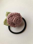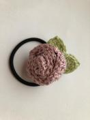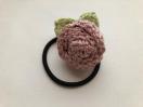 レース糸で巻き巻き薔薇を編んでヘアゴムを作りました。