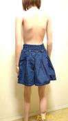 [商品情報] 幅広&フレアのミニデニムです。柔らかストレッチ素材で心地良いです。 色:インディコ サイズ:M 平置き⇒ウエスト(ゴム)32,5cm、着丈45p、裾幅93cm 素材:綿 ストレッチ:あり 裏生地:なし ファスナー:なし 他:着用の少ない綺麗なお品です。ホームクリーニング済み。