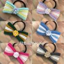 レース糸で編んだ、かぎ針編みのリボンヘアゴムです。