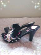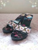 ★フロントのきらきらピーズ&スパンコールの花型がオシャレな下駄風サンダル(*^▽^)/
