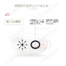 使用方法:対策した所に向けて置いて、電源をONに入れます。ボタンを長押しして、赤いランプが1回点滅で電源ON。ボタンを長押しして、赤いランプが2回点滅して電源OFFです。電源が入っている時は、赤いランプが10秒に1回の点滅をします。