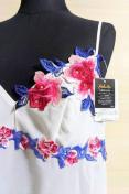 スリップはため息が出るほどゴージャスで精緻なレースと滲む感のある大きなバラのアップリケに目を奪われます。