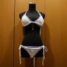 2枚重ねる珍しいタイプの水着です。写真Cのようにシンプルに着ても良いし、写真Dのようにレースの水着を内側にしたり、写真Eのように輪に通したり、ねじってみたりアレンジが出来ます。