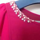 デコルテラインに輝くビジューやフェイクパールやパーツが多すぎず大人なデザインです。