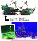 細部まで巧妙に再現されている難破船のアクアリウムフィギュアです。エアーポンプに接続すると海賊船のボードの中央から水泡が放出され、よりゴージャスで高級感が増します。船の繊細なディテールでリアルに作られており、水槽に入れるだけで深海世界の本格的で神秘的な空間が楽しる水槽アクセサリーです。
