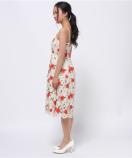 Lilybrownベビーピンクサテンキャミソールフレアワンピースフラワーレースリリーブラウン刺繍