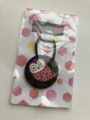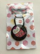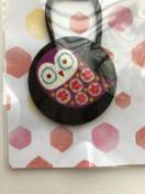 縁起物のフクロウさんをくるみボタンに閉じ込めました。