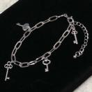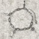 シンプルなチェーンのブレスレットにハートモチーフとクローバーモチーフのキーチャームをジャラジャラと付けました☆