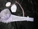 光沢のライトパープルにシルバー系の刺繍使いでボリューム感演出、ストラップはブラウン系取りはずし可能、パッドも取りはずし出来ます。サイズ アンダーバスト70 バスト85 ヒップ87〜95 素材 ポリエステル ナイロン その他 新品でお届けいたします。