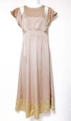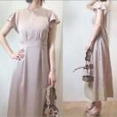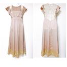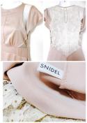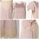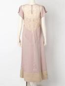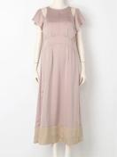 snidelバックシャンレースドレスモカベージュブラウンサテンフラワーロングワンピースフレアスリーブスナイデルシースルースリップヌーディーカラー光沢