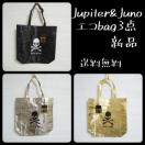 ▼レア★Jupiter&Juno【新品】ドクロ-ROCKカジュアル エコbag3点(ブラック&シルバー(暗めのシルバー色)&ゴールド)