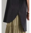 前の左胸&後の首下に控えめなロゴプリントがアクセント♪。大きくカーブしたラウンドヘムはTシャツでは珍しいデザインです♪。シンプルでオシャレな黒Tシャツ!ゼヒいかがですか??。