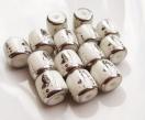 白地にメタリックカラーの模様がメッキされたガラスビーズです。