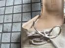 左側の甲のリボンの先の金具が破損してなくなっています。