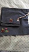 ブルー柔らか綿の巾着袋縦横約18センチ。 ミニポーチ縦横約10センチ。マジックテープつきハンドメイド締切日時