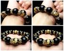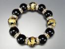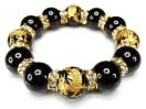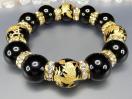 幸運武士麒麟手彫り18mmオニキス金箔高級ロンデルブレスレット天然石数珠