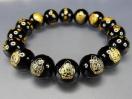 4Aオニキス十二支御守り本尊仏像漢字金箔彫り12mm天然石ブレスレット