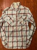 説明/fine sportswear ビームスのウエスタンシャツです。淡い水色がレトロな雰囲気でとても素敵です。配色もいいと思います。アメカジスタイルにはぴったりです。襟に折れクセがついています。アイロンをかけてやれば直る程度かと。中々かっこいいウエスタンシャツです。おすすめ。
