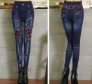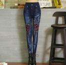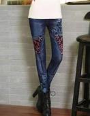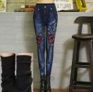 パープルの豹柄とブルーお花がプリントされたお洒落なデニム風レギンスです。