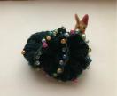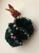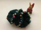 キラキラクリスマスカラーのビーズを編み込んで、ボリュームシュシュを作りました。