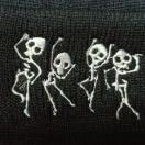 ブラック地にホワイトで愛嬌のあるダンシングスケルトンの刺繍。インパクトあるニット帽です。 お色も合わせやすいブラック。