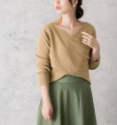 【カシュクールデザインが女性らしさを引き立てるリブニット】