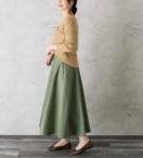 ロングスカートに前だけタックインしたレディな着こなしも◎