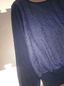 トップスは前がシンプルなVネック、後ろが同色レースの切替デザインになっています◎