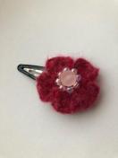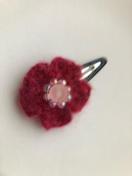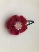 ふわふわモヘアの毛糸でお花を編んで、パッチンピンを作りました。