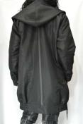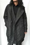 裾にリブをあしらったバルーン状のシルエットが特徴的なルーズシルエットのフード付きコートです。。