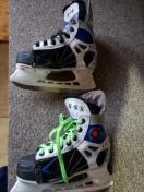 ホッケー用のスケートの出品になります。サイズは22、5で中古品になりますので傷や汚れと刃も研がないとダメかわかりませんのでご理解下さい。後片方のヒモが切れ色が違いますので宜しくお願いします。締切日時