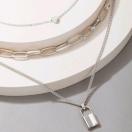 コイン鍵とハートデザインの個性的な3連ネックレス。