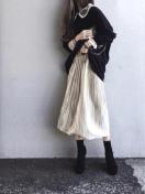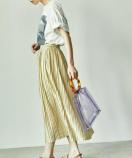 ウエストにたっぷりギャザーを取っていて、細かいプリーツと裾にかけて広がるシルエットが綺麗ラインに、仕上がっています