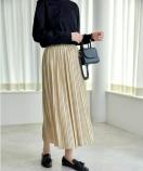 シルキーな光沢で、コーデを華やかに彩る、ロング丈のサテンプリーツスカート