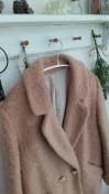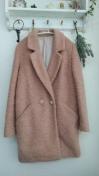 小さなパールの集合体のボタンがコートを格上げする上品かわいいアイテム。オレンジベージュのブークレ素材が柔らかい雰囲気を演出します。