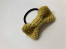 ウール100%の毛糸で丸っこいリボンのヘアゴムを作りました。