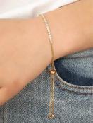ラインビジューを規則的に並べたブレスレットは、上品かつリッチに光り輝く華やかなアイテム