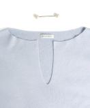 首元のパールがフェミニンな印象を与えてくれるフレアスリーブニットです