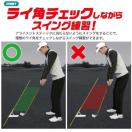 アライメントスティックに当たらないようにスイングをすることで、理想のライ角をチェックしながらスイング練習ができます。