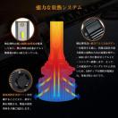 【強力な放熱システム】熱伝導率の高い航空アルミ合金ボディーと銅製LED基板の組み合せが、瞬時に熱を放散することができるほか、耐久性を持ちながら軽量化も実現します。さらに、10000RPM冷却ファンが内蔵され、熱がより早く放出することができます。多重放熱システムのおかけで、LEDバルブの放熱効率が向上されます。よって、LEDチップをが保護され、光の減衰を低減し、安定した発光が続くことができます。