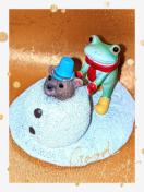 かえるとクマの雪遊び
