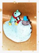 雪合戦でカエルさんに負けたクマさんは、罰ゲームとして、雪だるまになってしまいました。イタズラ好きなカエルさんは、まん丸体系のクマさんがさらにまん丸く雪だるまとなったので大喜び♪クマさんも雪が気持ちよくて幸せそうな表情をしてます