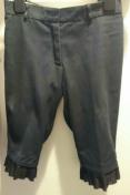 厚地の綿で、センターパーツが入った深ばきのメンズライクな作りながら、すそのフリルが可愛らしい 黒のハーフパンツ